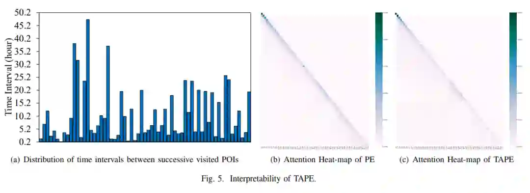 本文针对上述序列中时间间隔表示和序列局部空间信息建模不足的问题,分别提出了两个无需额外参数和高额计算负担的方法,时间感知位置编码器(Time Aware Position Encoder,TAPE)和间隔感知注意力模块(Interval Aware Attention Block,IAAB)。