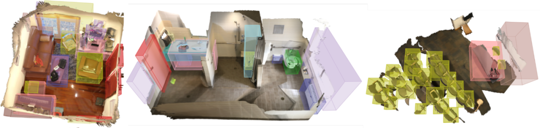下图为 ScanNet 数据集上的 3D 目标检测结果: