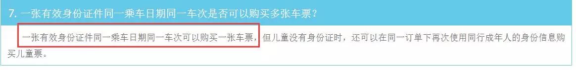 在 12306 官方网站上,明确写道:一个有效身份证件同一乘车日期同一车次可购一张车票(但使用同行成年人的有效身份证件信息为乘车儿童购买儿童票的除外)。