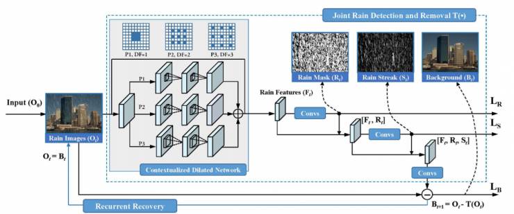 AI 科技评论按:去雨指的是对于一张雨中的图片,去除画面中的雨滴,得到还原后的图片,与图片去雾、超分辨率等同属CV领域中图像处理的范畴。去雨作为一种偏向low level的图像处理,本质上是分离图片中的内容与叠加的雨滴模式,并加以去除。这一问题以往多采用字典学习、稀疏编码等方法加以建模。在今年的CVPR中同时出现了2篇使用deep learning处理去雨问题的文章,而思路各不相同,故分别介绍供大家参考。