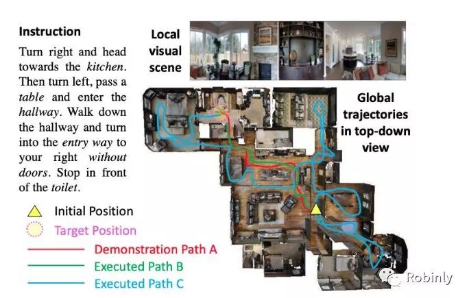 谢谢!这篇论文的主题是视觉语言导航,关于如何在 3D 环境中引导智能体遵循自然语言指令。这是我暑期在微软研究院开展的合作项目。我在回到学校之后继续完善了这项工作,并写成论文提交给了CVPR。