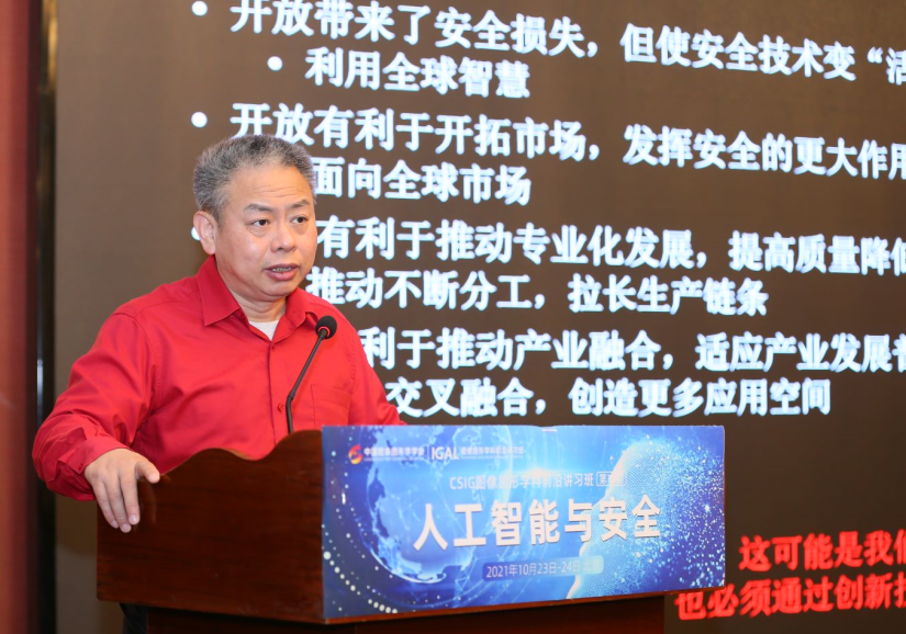 2021年10月24日,由中国图象图形学学会(CSIG)主办、数字媒体取证与安全专委会、南京信息工程大学计算机与软件学院、《网信军民融合》期刊联合承办的第18期CSIG图像图形学科前沿讲习班(IGAL18)在北京辽宁大厦圆满闭幕。本期讲习班主题为“人工智能与安全”,由中国科学技术大学俞能海教授担任学术主任,来自全国各地的教师、学生以及企业工程师参加,讲习班现场座无虚席、气氛热烈。