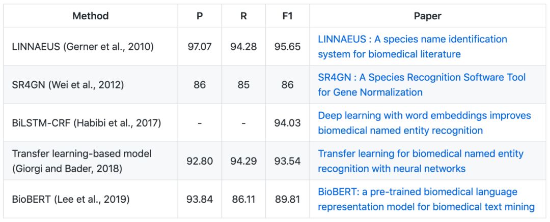 LINNAEUS: a species name identification system for biomedical literature. Gerner M, Nenadic G, Bergman C M. BMC bioinformatics, 2010, 11(1): 85.