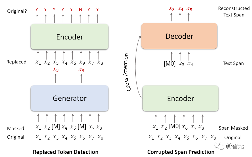 RTD任务使用一个经过MLM训练的生成器来生成一个不明确的标记,以取代原始输入X中的标记,然后用判别器来确定该标记是来自X还是由生成器生成的。