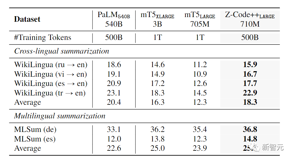 Z-Code++仅针对抽象式文本摘要任务进行优化,在5种语言的13个文本摘要任务中,有9个达到新sota性能,成功超越一众大模型,参数量仅为PaLM的600分之一,GPT-3的200分之一,性价比爆棚!