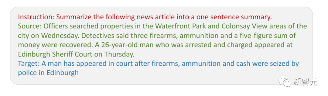 研究人员还为每个训练对添加一个摘要任务的自然语言指令。