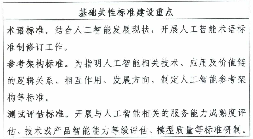 C基础软硬件平台标准主要围绕智能芯片、系统软件、开发框架等方面,为人工智能提供基础设施支撑;