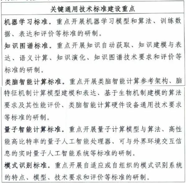 D关键通用技术标准主要围绕机器学习、知识图谱、类脑智能计算、量子智能计算、模式识别等方面,为人工智能应用提供通用技术支撑;