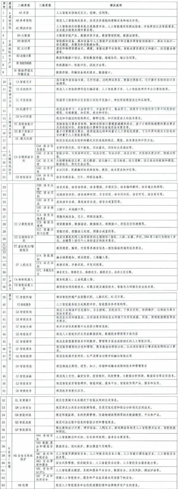 F产品与服务标准包括在人工智能技术领域中形成的智能化产品及新服务模式的相关标准;