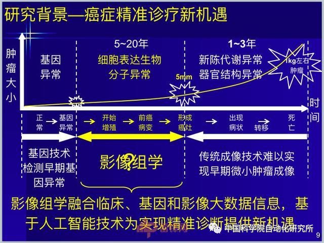 现阶段而言,基因异常其实已经有一系列的方法来检测,但不意味着能看病。在这个空档期,如果能用AI大数据、影像组学来研究、描述和量化,就很有可能大大提高五年生存率。