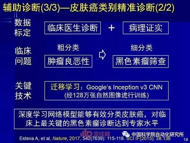 · 2017年,斯坦福大学在Nature上发布一项研究报告,表明人工智能皮肤癌诊断精度已达专家水平。