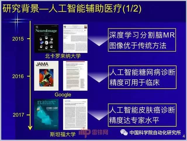 不过,计算机人工智能技术在医疗上也得到一些应用,像深度学习在疾病的诊断以及愈后等等,都有一些典型的应用。如: