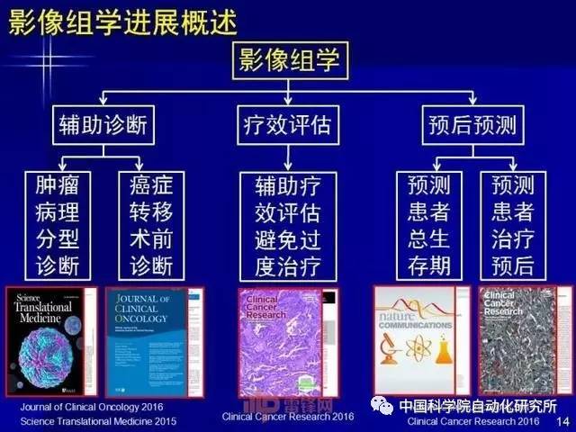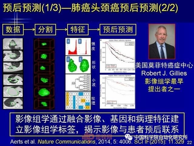 自2012年概念提出以后,影像祖学的概念到2014年得到进一步延伸,走向临床。影像组学从研究走向临床,典型代表就是2014年这篇文章。
