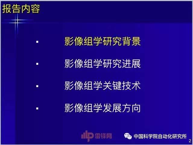 以国内外临床专家为主开发,说明影像组学和人工智能以及大数据,对风投和产业界来说都感兴趣,这不是看哪个技术和算法,关键是看产生什么样的效果。下面我会着重从应用的角度来讲它的进展,技术和方法和应用。
