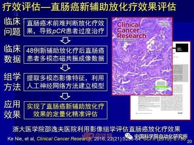 这个案例还是结直肠癌。其实包括乳腺癌,很多人会做新辅助化疗。但有的人做得有效,有的人做得无效。对医院来说,有效无效都得交钱。但对病人来说,不光是钱,身体还要受到很大的伤害。所以,业界也在思考,能不能利用AI大数据进行分析,在病人做放化疗之前就判断,该治疗对其有没有效果。