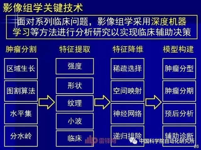 刚才我讲的是临床效果在辅助诊断、疗效评估和预后预测的案例工作,然而如果要谈人工智能和影像组学就必定离不开技术。所以我把技术简单梳理一下。