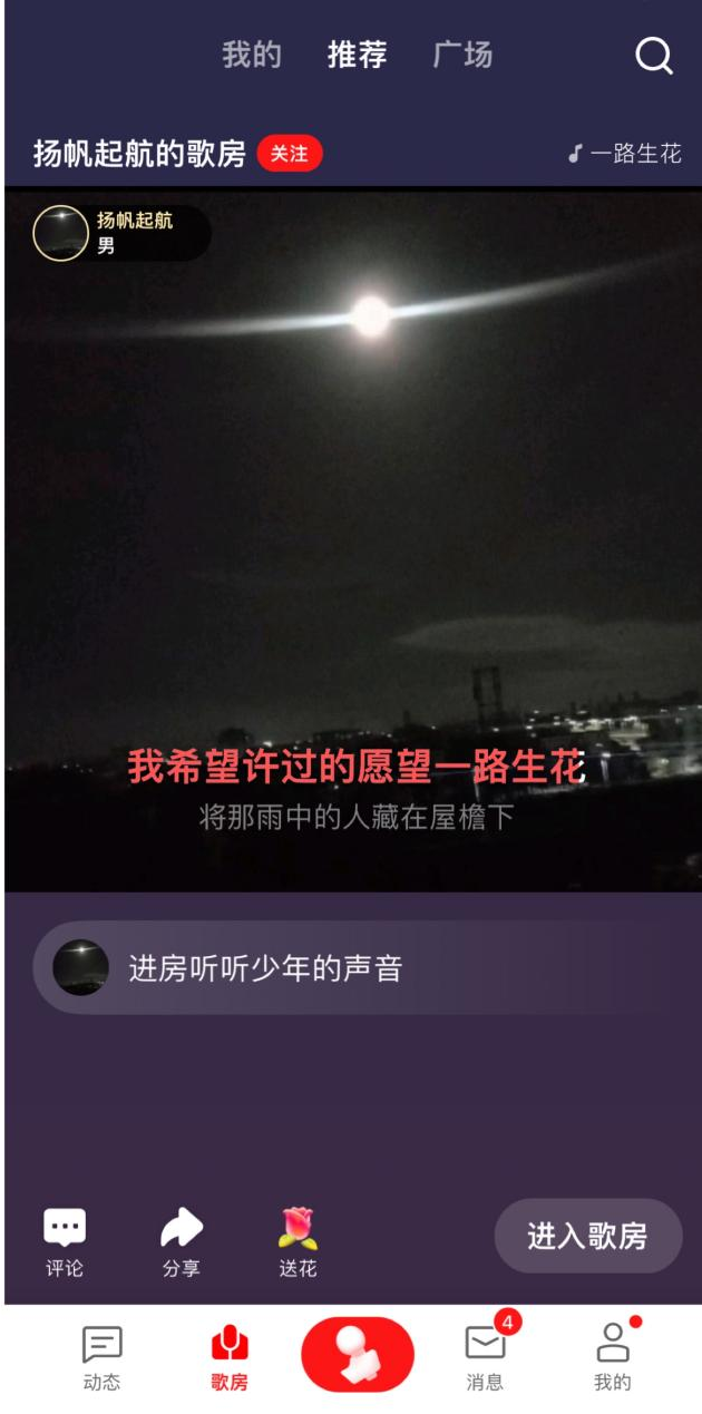 顶部为主播相关的信息:昵称、头像、演唱曲目。