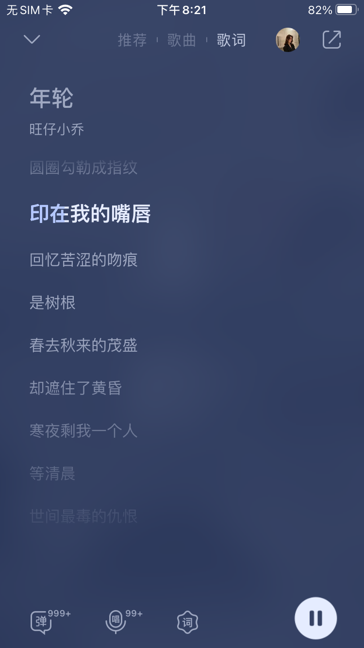 正在演唱的歌词和其他歌词相比,颜色较相近,而全民K歌用鲜明的红色显示了正在演唱的歌词。