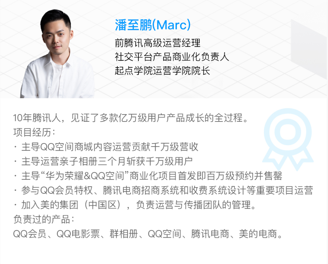 在此,推荐 腾讯学院 和 起点学院 联合办学的《90天互联网运营实战班》。