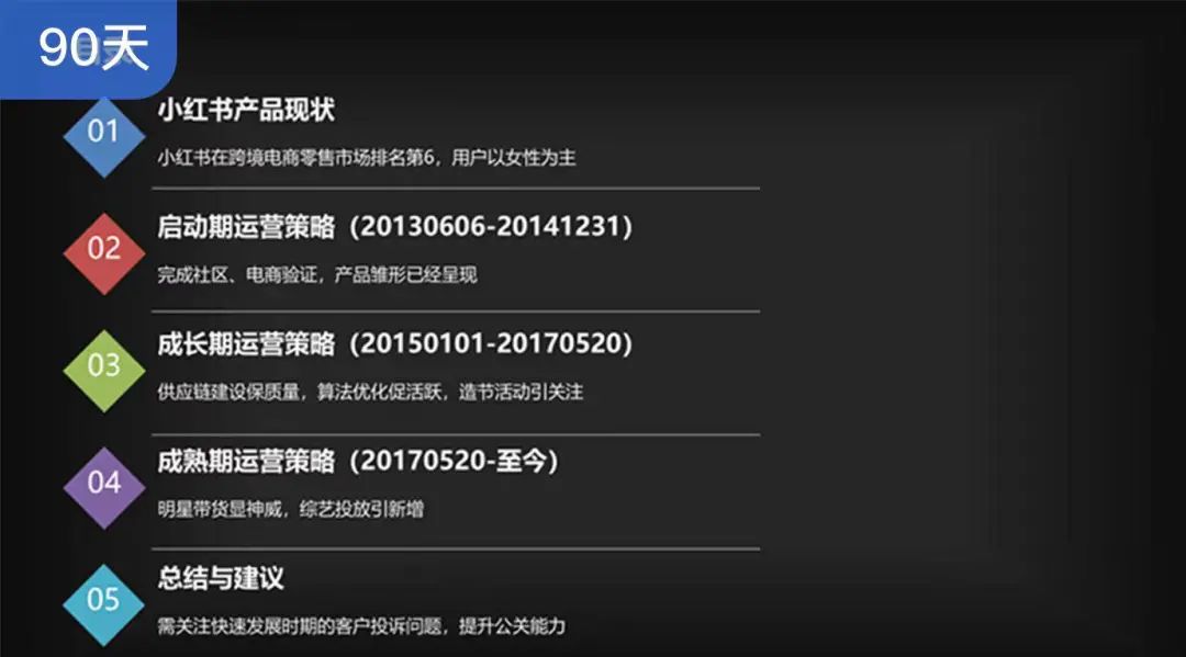 我们就拿90天运营实战班的学员作业《小红书产品生命周期运营策略分析》来作为例子吧——