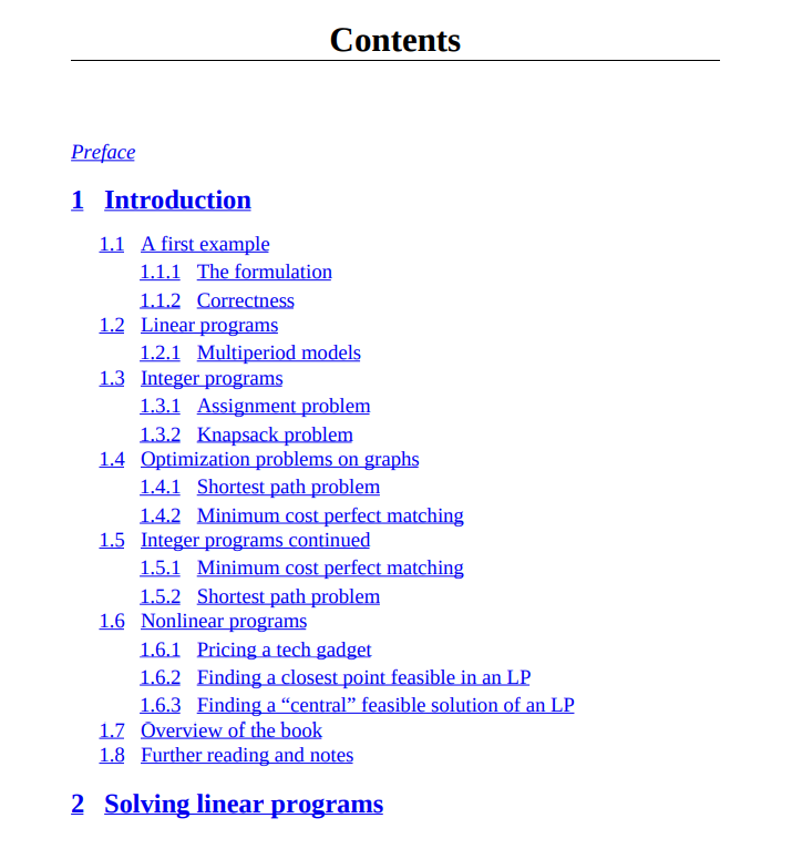 广义上说,优化是在一些约束条件下最小化或最大化函数的问题。优化问题无处不在。每个首席执行官(CEO)都面临着在有限的资源下实现利润最大化的问题。一般来说,这是一个过于笼统的问题,无法精确地解决; 然而,使用优化技术可以成功地解决决策的许多方面。例如,这包括生产、库存和机器调度问题。事实上,绝大多数财富500强公司都使用了优化技术。然而,优化问题并不局限于企业世界。每次你使用GPS,它都会解决一个优化问题,即如何最小化两个不同地点之间的旅行时间。你的家乡可能希望通过为每辆卡车寻找最有效的路线来减少垃圾车的数量。城市规划者可能需要决定在哪里建立新的消防站,以便有效地为市民服务。其他的例子包括:如何构建一个投资组合,在限制波动的同时最大化其预期回报;如何以尽可能低的成本建立一个有弹性的远程通信网络;如何在满足旅客需求的同时,合理安排航班;或者如何使用尽可能少的教室安排期末考试。