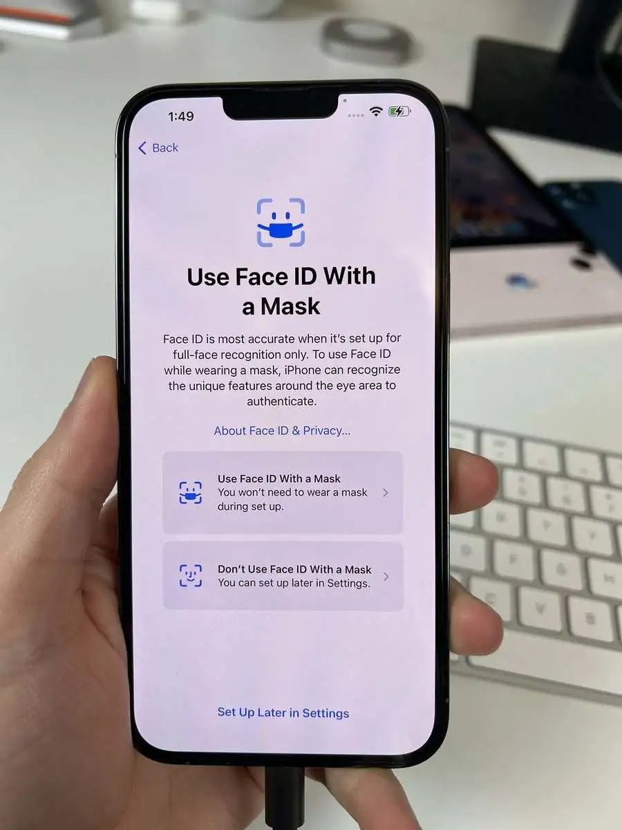 2020年iOS 13.5更新后,iPhone会检测到试图戴口罩使用Face ID的用户,并立刻提示用户输入密码。
