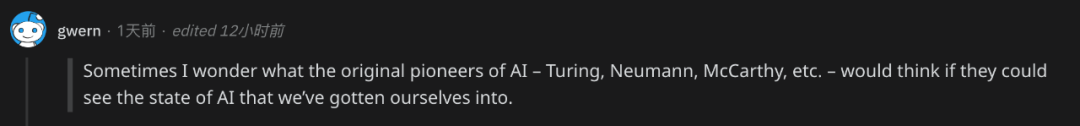 在评论区,有人回答了正文开头的问题:「如果图灵、冯诺依曼、麦卡锡还活着,他们会怎么看今天的人工智能发展现状?」