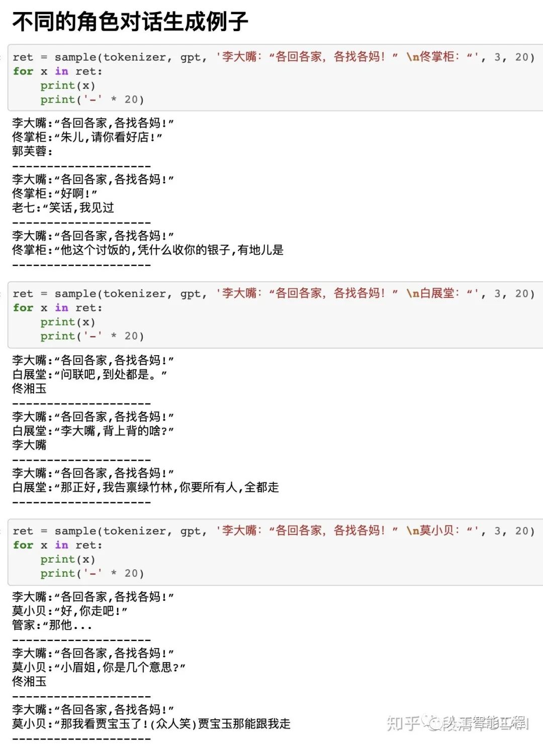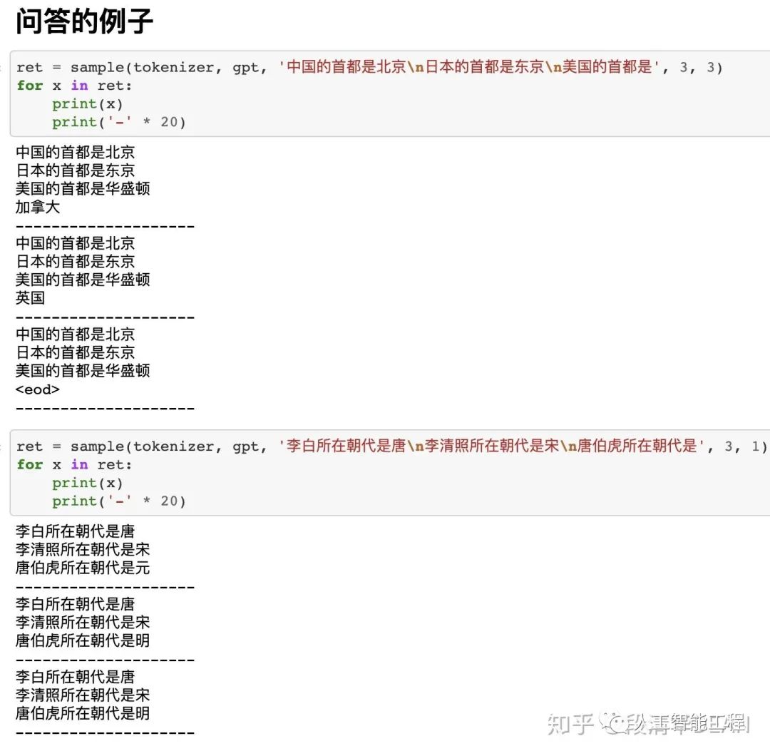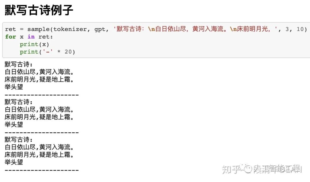 下面图片中,sample(tokenizer, gpt, 'xxxxxxxxxx', 3, 10),这里的'xxxxxxxxx'可以认为是我们构造的“半句话”,每个例子会生成3个结果。
