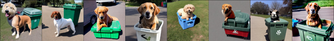 输入提示「a dog on top of sks container」就能让小狗坐在箱子里: