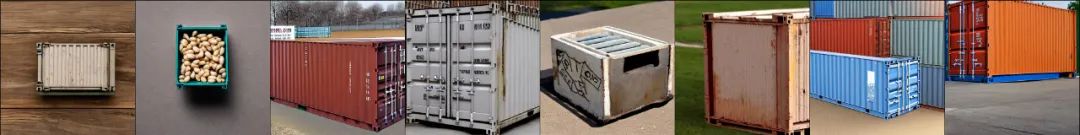 训练完成后,在「photo of a sks container」提示下,模型生成的集装箱照片如下: