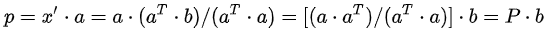 ,其中P是对应的投影矩阵。因此,任意向量b都可以使用P投影到一维子空间a向量的方向上,换言之,对P列空间的基作任意线性组合均落在子空间a中,即P列空间撑满了子空间a,因此P的列空间和秩都与投影子空间a相同,即过a的一条直线,秩为1。另外,投影矩阵必须满足2个性质: