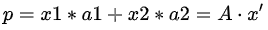 将b向量投影到二维子空间上,即子空间基的方向。首先定义二维子空间的基a1,a2(A=[a1,a2]),则投影 ,其中