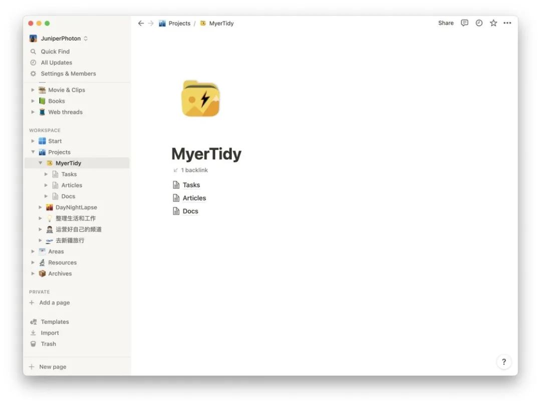 PARA 能描述一个事情的生命周期的流向:如果它是你本身短期内专注的,那么它属于 Projects 类别,而如果在某个时间段已经完成了这个事情,那么你可以根据它的性质,移动到 Areas 或者 Resources;如果这个事情本身中途废弃了,那么你可以移动到 Archives 里进行归档 —— 而它的生命周期定义,完全是你个人根据 PARA 的指导来进行的。