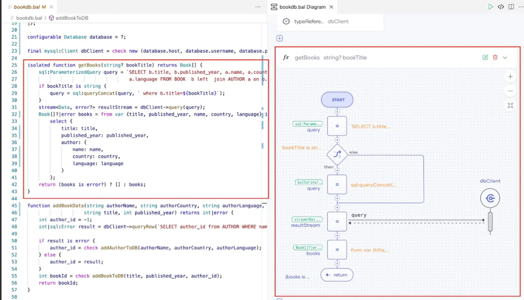 由于本例使用 MySQL 数据库作为后端数据存储,因此需要提供查询数据库和添加新记录的功能。Ballerina 为 DB 交互提供了一流的支持。