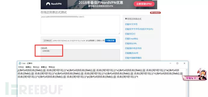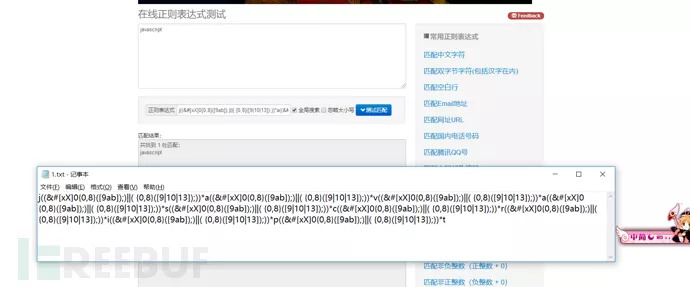 3.根据生成的其中一条正则表达式,可以看出,他应该是匹配javascript之间有没有恶意字符防止绕过,例如j avascript会被匹配到