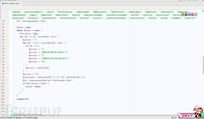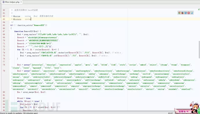 1.先查看/include/helpers/filter.helper.php文件,其中的RemoveXSS函数,其中代码如下: