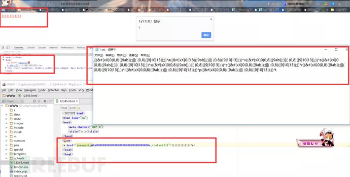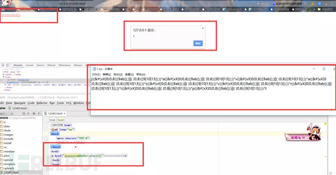 5.还有一个问题,就是织梦的正则匹配&#[xX]0{0,8}([9ab]); ,注意{0,8},大概是八位左右,如果我超过八位,就算加上分号过滤器也匹配不到,正好十六进制格式的时候可以有很多0,足够超过八位了,例如: