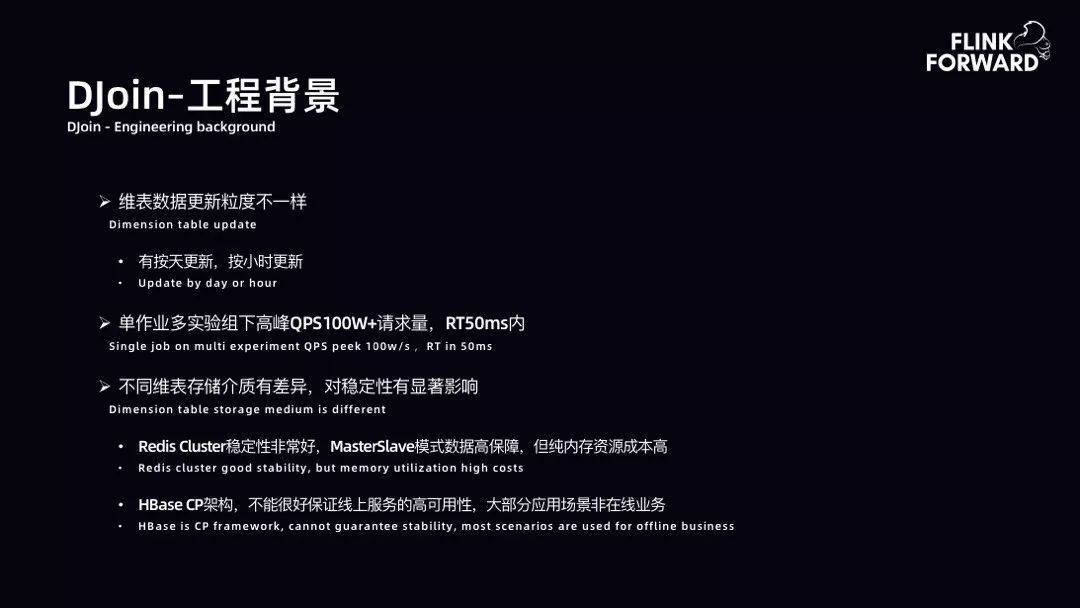 DJoin-工程背景:bilibili 对于维表数据要求不同。比如一些维表数据很大,以 T 为单位,此时如果用 Redis 存储会造成浪费。而有一些维表数据很小,如实时特征。同时,维表数据更新粒度不同,可以按天更新、按小时更新、按分钟更新等。