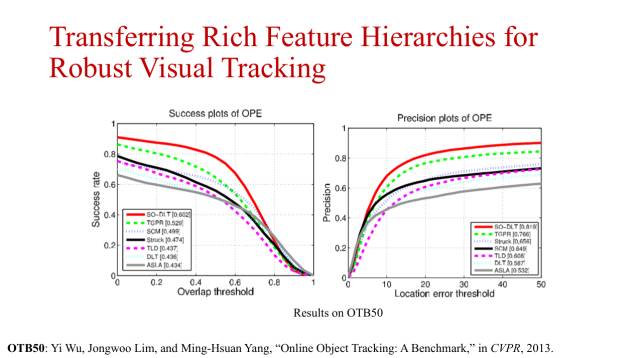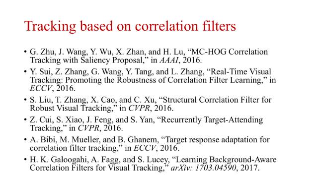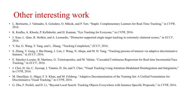 上图列出了一些最近的其他目标跟踪工作,比如人眼跟踪、人脸跟踪以及行人跟踪等等。
