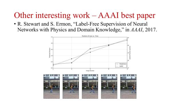 上图为AAAI 最佳论文,在目标跟踪上进行了方法的验证。该工作用一个先验模型约束神经网络学习,以减少对样本量的需求。