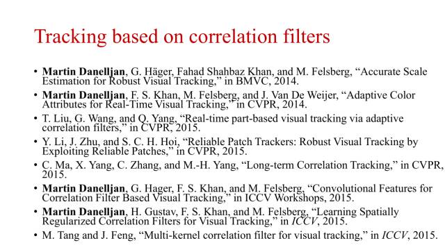 从2014年开始,基于相关滤波的跟踪研究方法成为目标跟踪的一个热点。其中,来自瑞典的Martin做出一系列不错的工作。