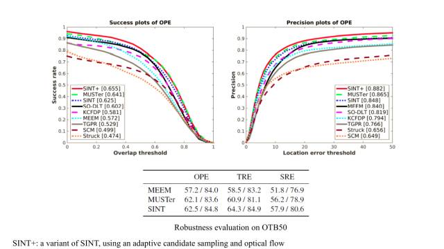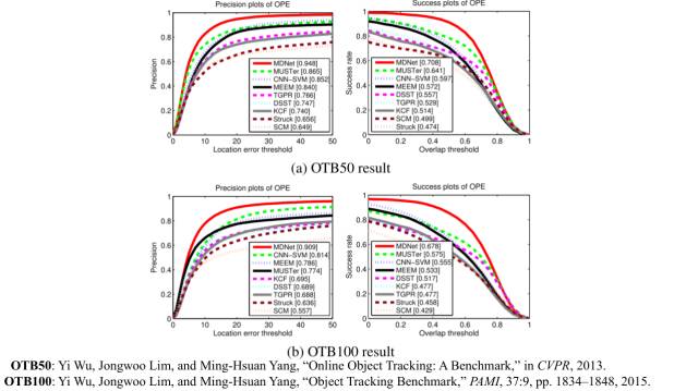 虽然运行时间慢,但是该网络的精度非常高,在OTB50和OTB100上都取得了非常好的结果。
