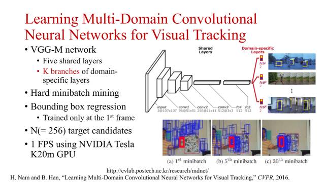 CVPR2016上提出的MDNet方法在多个数据集上都取得了非常好的结果,该网络具备如下特点: