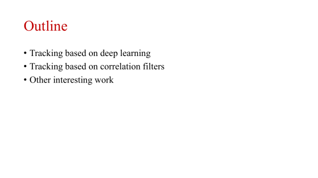本文将从三个方面介绍视觉跟踪领域最近的进展:基于深度学习的目标跟踪研究进展、基于相关滤波器的目标跟踪研究进展、以及其他的方法介绍。