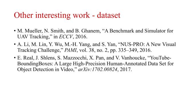 比如说在ECCV2016上的无人机航拍的数据集。