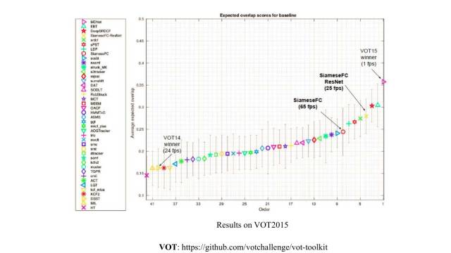 该网络在VOT2015数据集上取得了不错的结果,由于采用了全卷积网络的结构,和其他基于深度学习的方法相比,速度具有很大的优势。