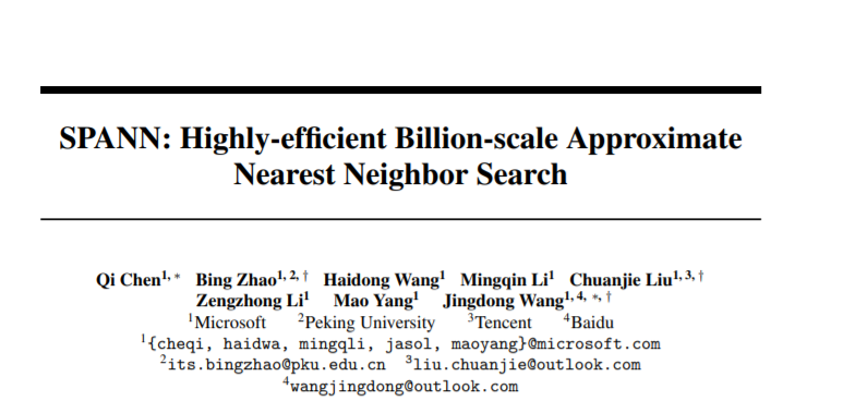 随着数据规模的快速增长,基于内存的向量搜索面临着海量且非常昂贵的内存需求,人们对小内存-大硬盘混合型向量近似最近邻搜索的需求也越来越迫切。因此,研究员们提出了一种非常简单且高效的基于倒排索引思想的内存-硬盘混合型索引和搜索方案 SPANN,有效地解决了倒排索引方法中的三个会导致高延迟或者低召回的难题。实验结果显示,SPANN 在多个上亿量级数据集上都能取得两倍多的加速达到 90% 召回率,其查询延迟能够有效地控制在一毫秒左右。同时, SPANN 的设计能够有效地被扩展到分布式搜索中限制每个查询的资源开销和延迟大小,从而实现高可扩展性。目前 SPANN 已经被部署在了微软必应搜索中支持百亿量级的高性能向量近似最近邻搜索。