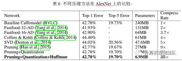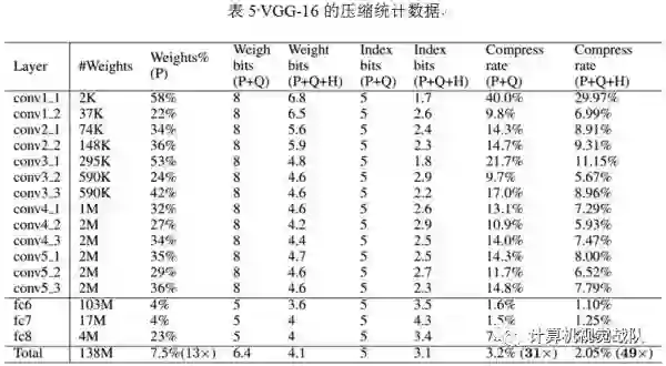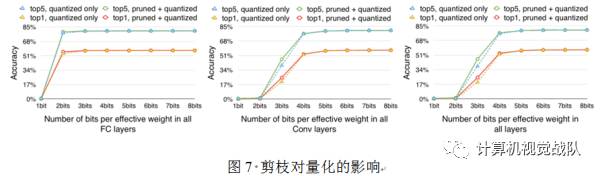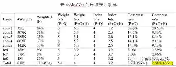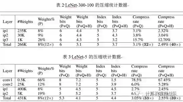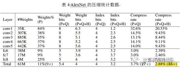 为了计算压缩率,给出个簇,本文只需要 bits去编码索引,通常对于一个神经网络有个连接且每个连接用 bits表达,限制连接只是用个连接共享权值将会导致一个压缩率: