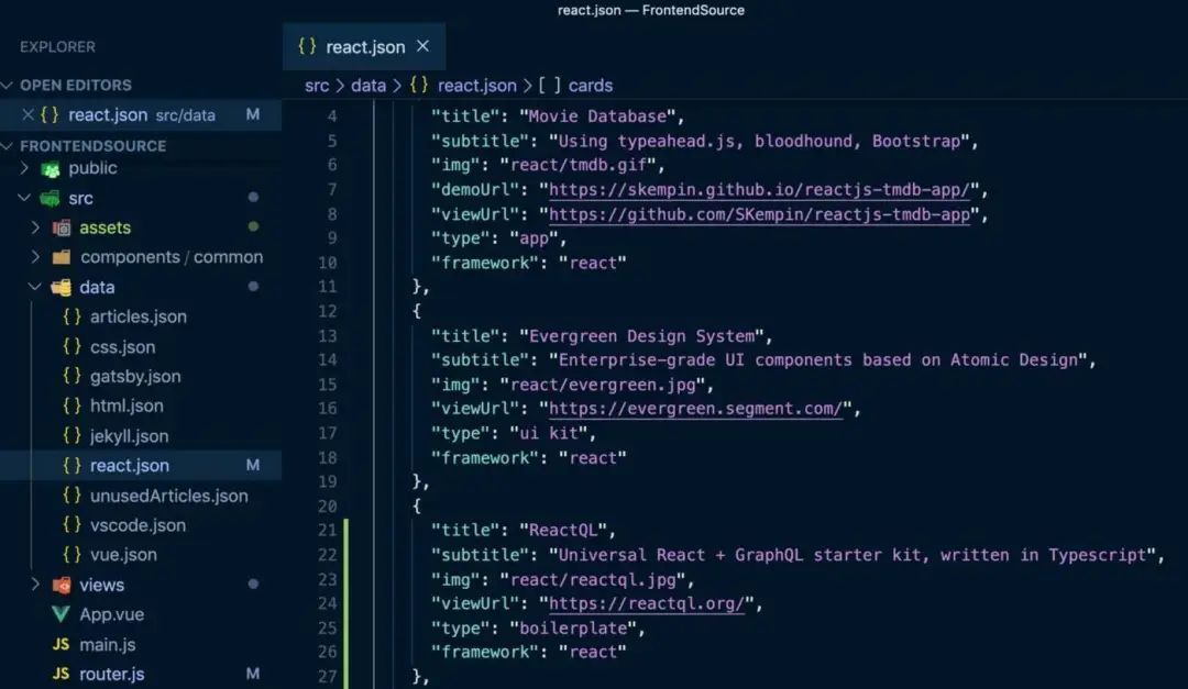我按框架分离了.json 数据文件,这样以后添加起来会更容易。我还决定将它们保留在项目文件中,而不是使用外部数据库。这样,如果我改变主意要换一个数据库来用,也无需更改一堆代码来适配新的数据库(如你在第 5 步中将看到的,这是一个明智决定)。