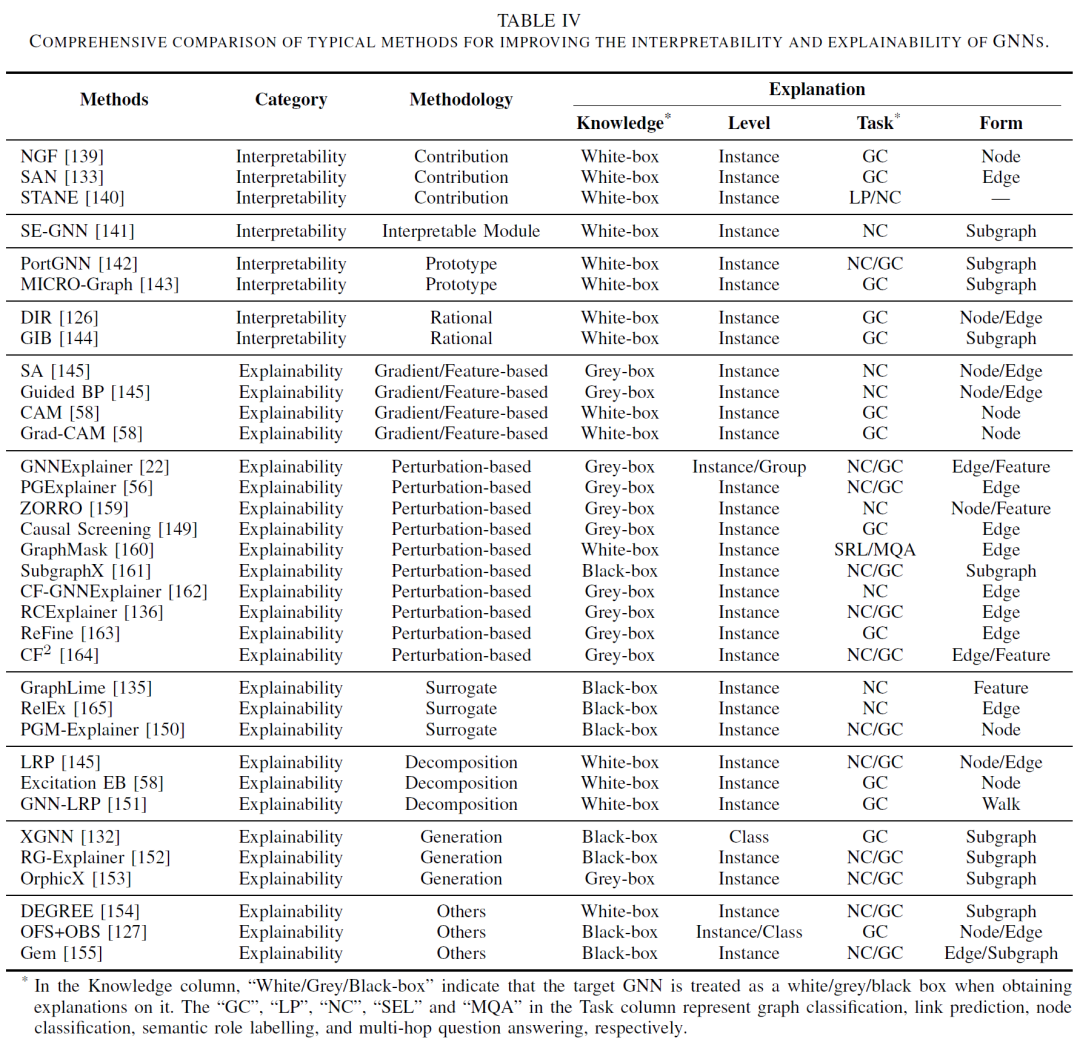在介绍了解释形式、解释方法的类别等基本概念后,该综述将涉及图神经网络可解释性的工作分成了自解释(interpretable GNNs)和事后解释(post-hoc explainers)两类。
